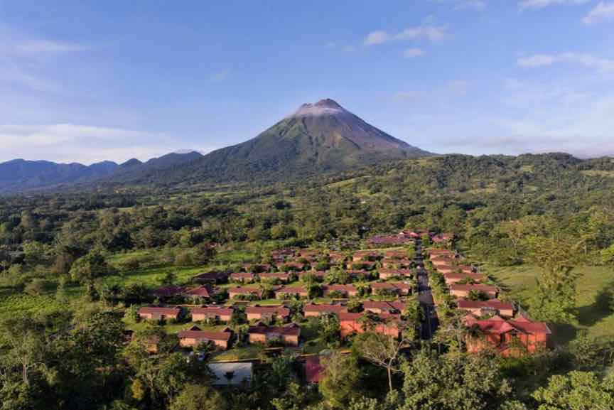 Arenal Springs is a resort style hotel offering fantastic facilities and its own hot springs. Located just outside the town of La Fortuna and close to the National Park, the hotel has 87 rooms which all provide fantastic views of the Arenal volcano. The rooms are spread out in rows like a miniature village and are accessed by golf carts provided by the hotel. They are particularly spacious and all come with their own private terrace facing the volcano as well as modern amenities such as a minibar, air conditioning, ceiling fans, hairdryers, complimentary tea and coffee and more.