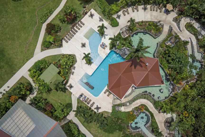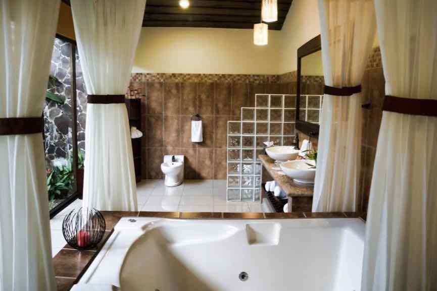 Master suites include a natural spring jacuzzi, a living area and hammocks. The hotel’s manicured grounds are well kept and include a big swimming pool with a swim up bar. Other facilities include a gym, a full service spa, three restaurants and a gift shop. Guests also benefit from free yoga classes and complimentary access to the hotel’s own hot springs.