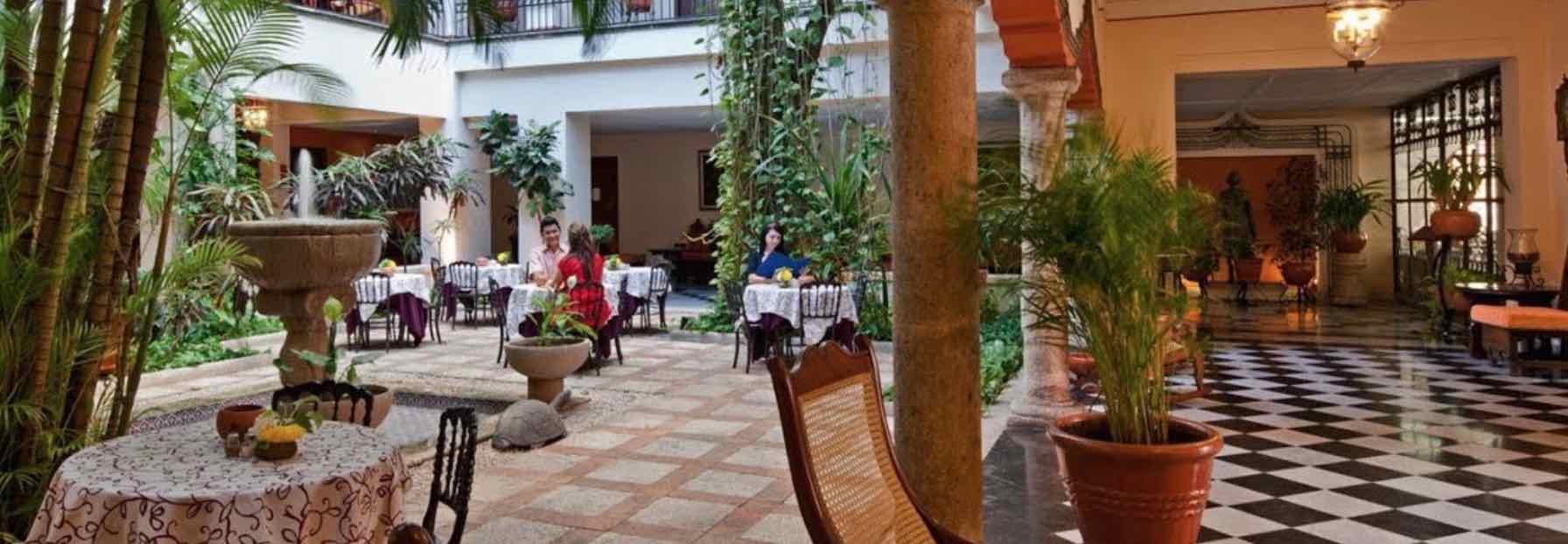 Casa del Balam, meaning ‘house of the jaguar’, is a family run hotel in the heart of Merida. The property is one of the few remaining original art deco houses in the city which was restored in 1970. This also makes it one of the oldest hotels in the city. The main building at the front is arranged around an interior courtyard, and at the back there is an additional modern building.