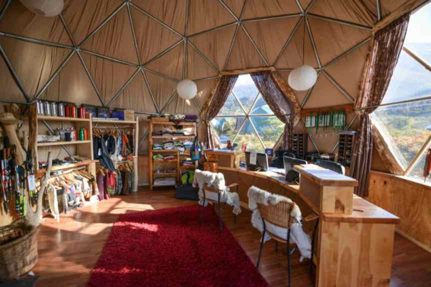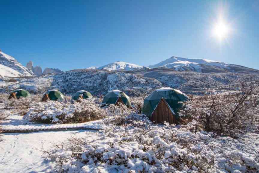 Eco Camp Patagonia is a unique and sustainable accommodation option nestled in the heart of Torres del Paine National Park in Chilean Patagonia. It offers a one-of-a-kind glamping experience, combining comfort, adventure, and environmental responsibility. The camp features geodesic dome-shaped accommodations, inspired by the traditional dwellings of the region's indigenous nomadic tribes. These domes are designed to minimise environmental impact while providing a cozy and comfortable stay. Guests can choose from a range of dome options, including standard, superior, and suite domes, each equipped with modern amenities.