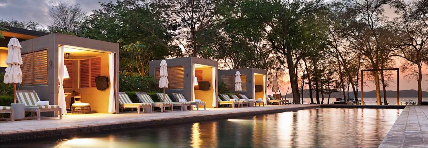 The hotel’s design is fresh and modern with pieces of abstract art, sculpture and beautifully manicured grounds. The full service Earth Spa offers a variety of healing treatments and four private massage pavilions suspended over the mangroves. Yoga classes are available and can be taken in the spa, gym or on the beach. There are two on site restaurants serving fresh ceviche and other dishes with service to the beach. Guests can rent the poolside cabañas which come with amenities and private service. Other activities include kayaking, paddle boarding, a variety of water sports, sailing, car rental and much more.