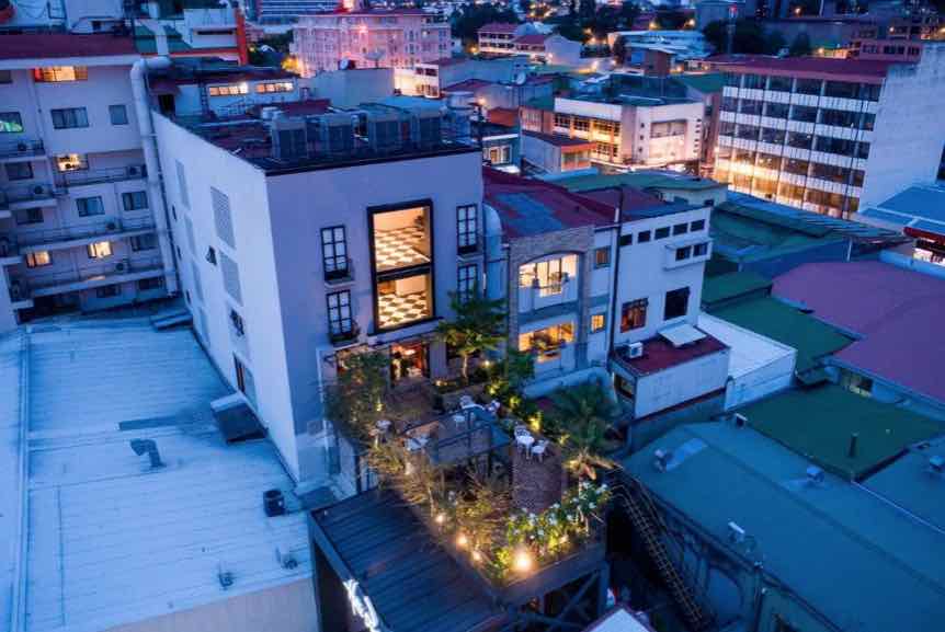 It is easy walking distance to the Teatro Nacional, the Central Market, all the museums and conveniences such as banks and shops. The hotel itself is covered on the outside with a multicoloured mural. Inside it is decorated stylishly with pieces of Costa Rican art. The rooms are simple but comfortable and come with everything you need. The best feature of this hotel is itβs fantastic rooftop bar and restaurant called Azoteca Calle 7. The food and cocktails are great and there is also an open air terrace filled with flowers and plants.