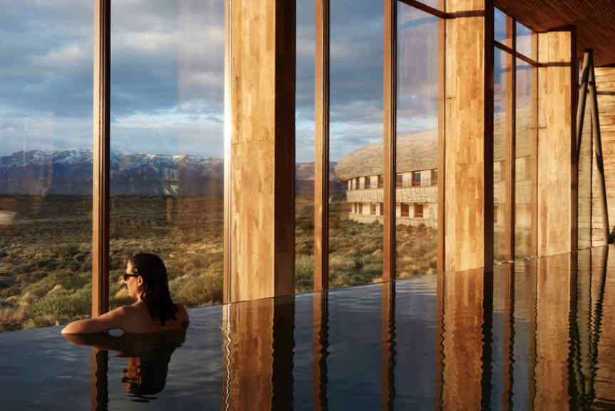 Tierra Patagonia is a luxury hotel nestled in the breathtaking landscape of Torres del Paine National Park in Chilean Patagonia. Surrounded by mountains, glaciers, and turquoise lakes, the hotel offers a unique and immersive experience for nature enthusiasts and adventure seekers. The hotel features elegantly designed rooms with panoramic views of the park, blending seamlessly with the surrounding environment. Guests can indulge in delicious cuisine at the on-site restaurant, which showcases local flavours and ingredients.